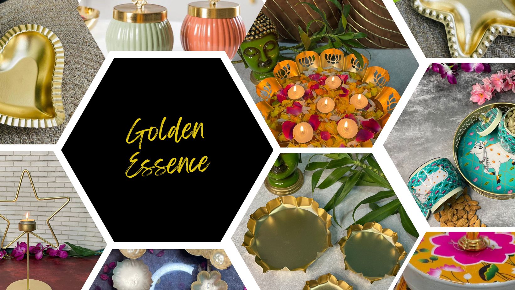 Golden Essence Handcrafted Jar And Tray - 2 Piece Set